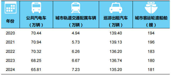 表5 2020-2024年年末全国城市客运装备拥有量