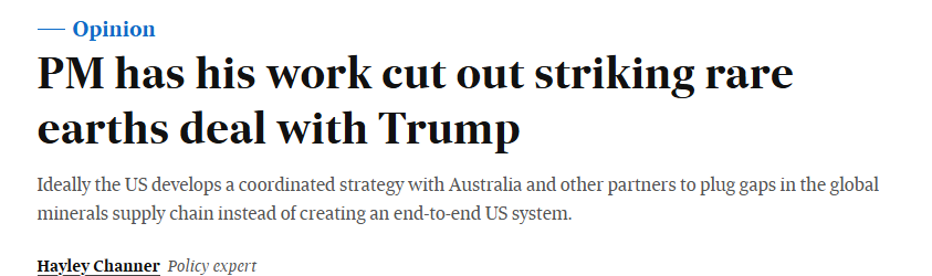 可以说,在中美关系下滑之际,澳洲如果和美国达成矿产稀土协议。